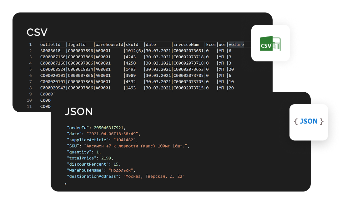 OLAP-куб, дашборды, витрины и REST API – выгружайте данные в BI, Excel или другие системы.