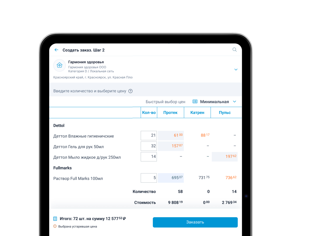 Реагируйте на Out of Stock и создавайте заказы из торговой точки. В Quiz доступны актуальные прайс-листы, маржинальность товаров и синхронизация с системами дистрибьютеров.