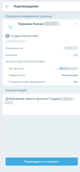 Если информация заполнена корректно и полностью, подтвердите действие, нажав кнопку «Подтвердить и отправить».