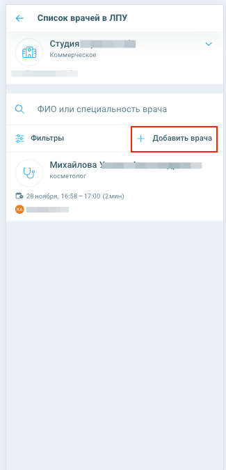 Нажать на «Добавить врача».