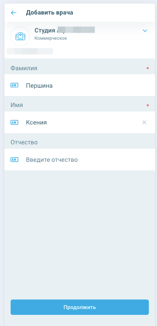 Для добавления нового врача необходимо заполнить все обязательные поля и нажать кнопку «Добавить».