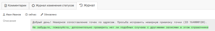 Также изменения в заявке могут произойти с основными её полями, типом задачи, описанием и т.д. Это можно отследить с помощью журнала, который находится внизу формы.