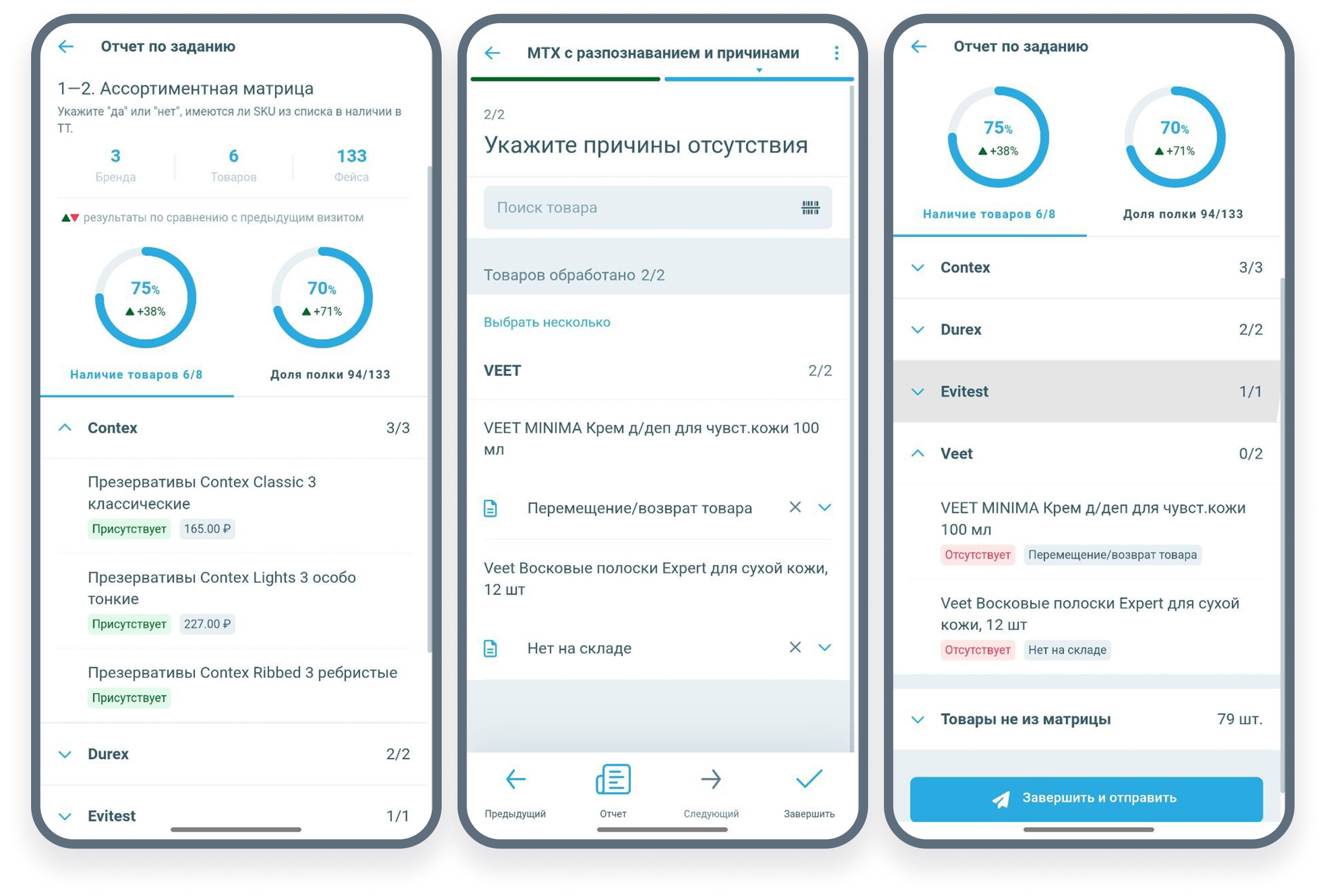 Товары, бренды, ценники и отчеты доступны сразу на визите.